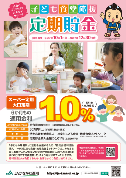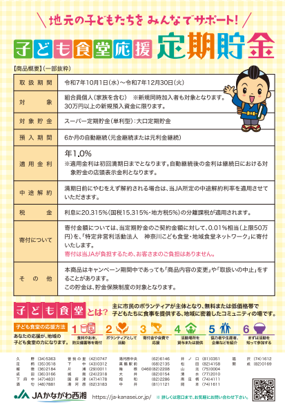 令和7年10月1日(水)より、「こども食堂応援定期貯金」の取扱いを開始いたします!