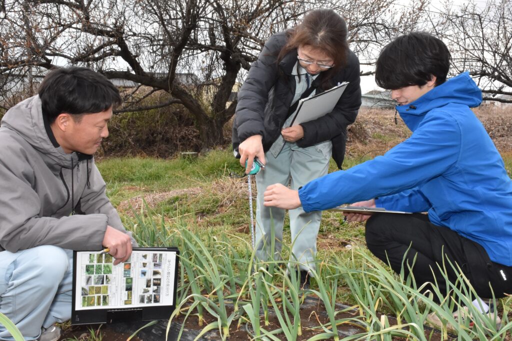 ニンニクのほ場11か所の巡回を2月17日に行いました。先日の降雪にも負けず、順調に育っていました。