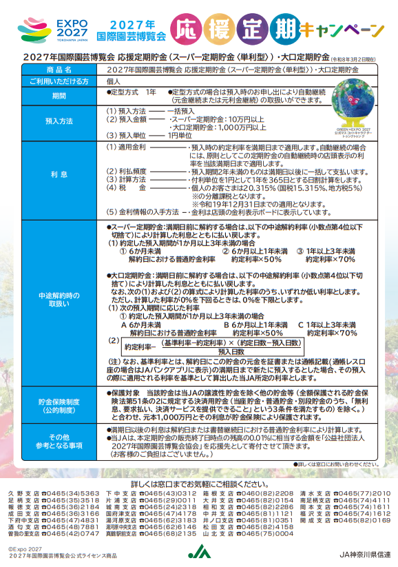 「2027年国際園芸博覧会応援定期貯金」のお知らせ