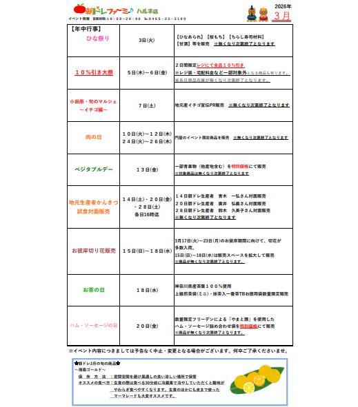 ※イベント内容につきましては予告なく中止・変更となる場合がございます。何卒ご了承くださいませ。